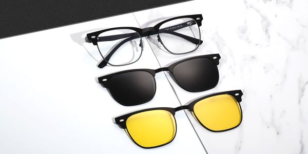 Square Black Metal Full-rim Bifocal & Progressive, Adjustable Nose Pads, For Wide Face, For Low Nose Bridge, Clip Ons Glasses