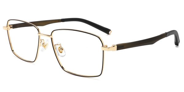 Square Black Gold Mixed Full-rim Bifocal & Progressive, Adjustable Nose Pads, For Wide Face, For Low Nose Bridge Glasses