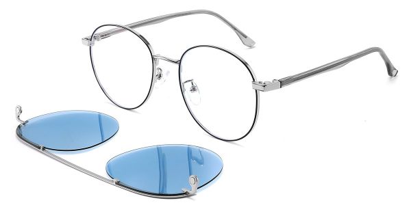 Round Silver Metal Full-rim Bifocal & Progressive, For Small Face, Adjustable Nose Pads, For Low Nose Bridge, Clip Ons Glasses
