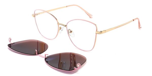 Cat Eye Pink Metal Full-rim Bifocal & Progressive, Adjustable Nose Pads, For Low Nose Bridge, Clip Ons Glasses