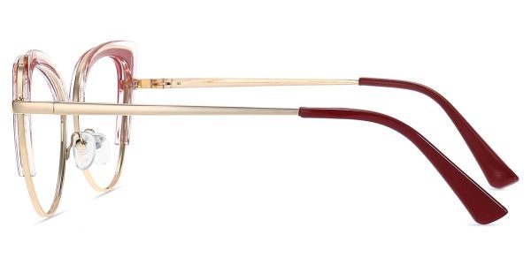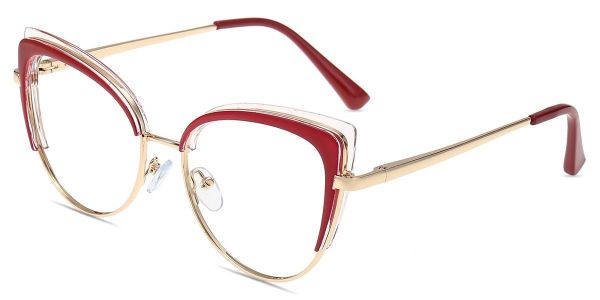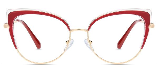 Cat Eye Red Acetate-metal Full-rim Bifocal & Progressive, Adjustable Nose Pads, For Wide Face, For Low Nose Bridge, Spring Hinge Glasses