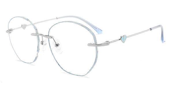 Geometric Blue Titanium Rimless Adjustable Nose Pads Glasses