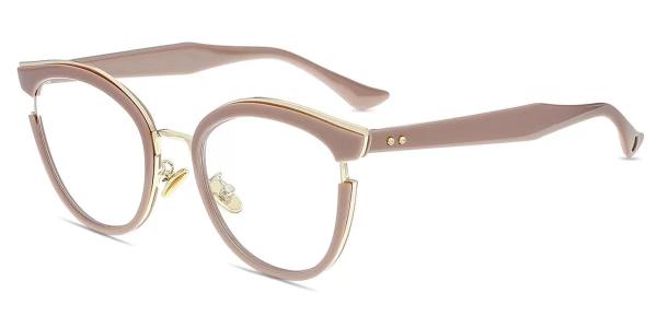 Horn Pink Gold Acetate-metal Full-rim Bifocal & Progressive, For Small Face, Adjustable Nose Pads, For Low Nose Bridge Glasses